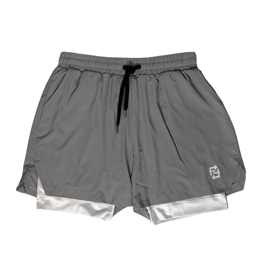 Grey on white FWF premium 2 in 1 compression shorts